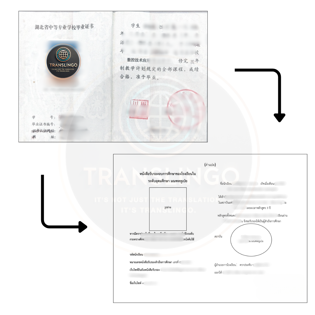 - รับรองคำแปล: ควรมีใบรับรองคำแปลจากสถาบันแปล เช่น Translingo