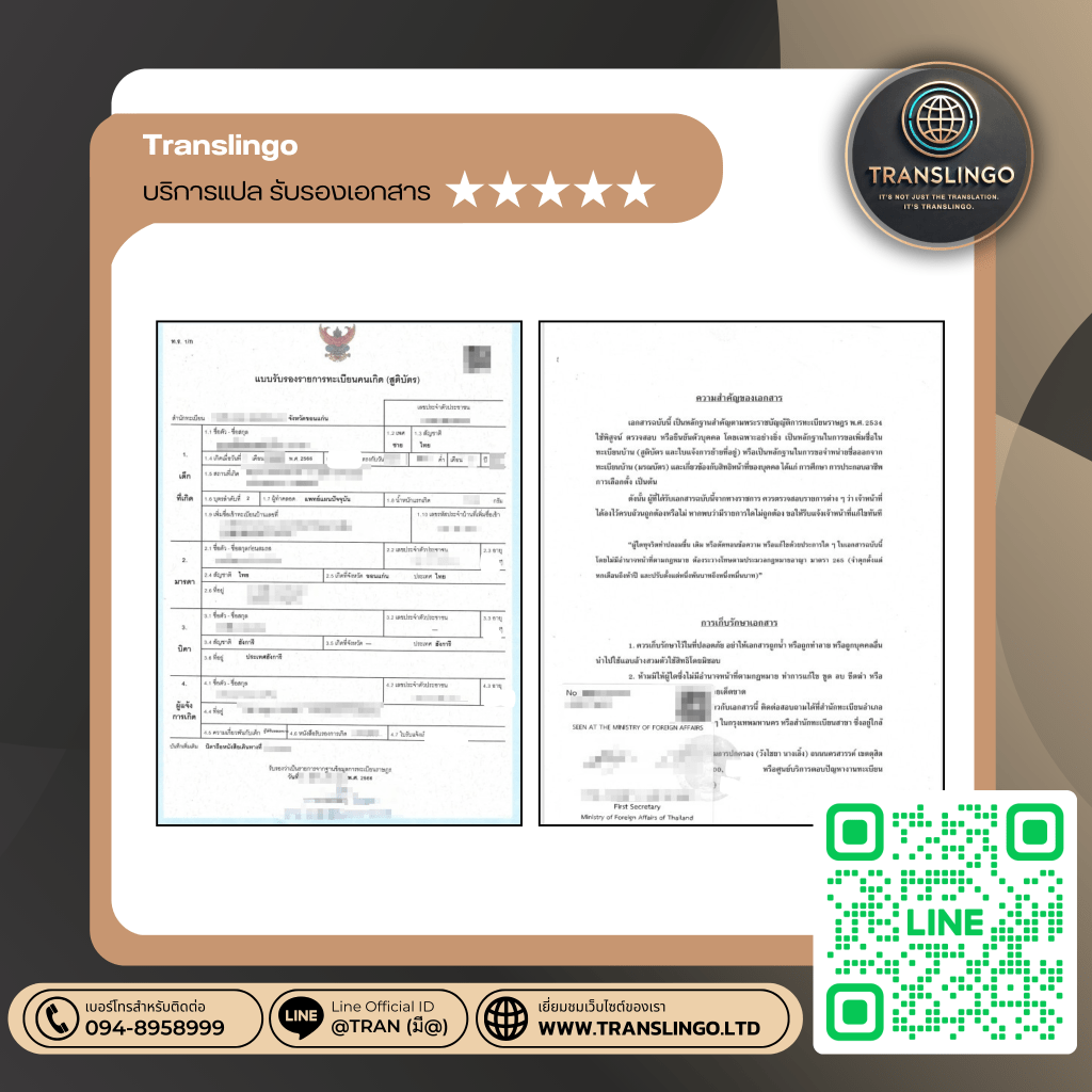 สอบถามเพิ่มเติมเกี่ยวกับบริการแปล รับรองเอกสาร