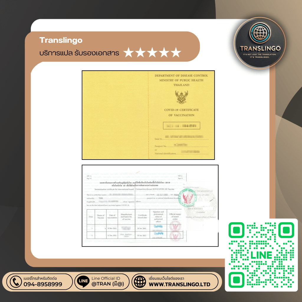 หมายเหตุ: การนำเอกสารจากประเทศหนึ่ง ไปใช้ในอีกประเทศ ควรตรวจสอบข้อกำหนดการแปล รับรองเอกสารจากหน่วยงานปลายทางทุกครั้งก่อนเริ่มใช้บริการ เพื่อป้องกันการแปล และรับรองเอกสารผิดวัตถุประสงค์