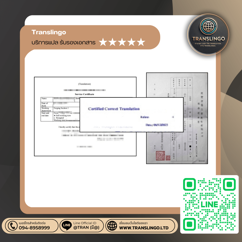 บริการแปล-รับรองโดยสถาบัน (Translingo Institute Certification)