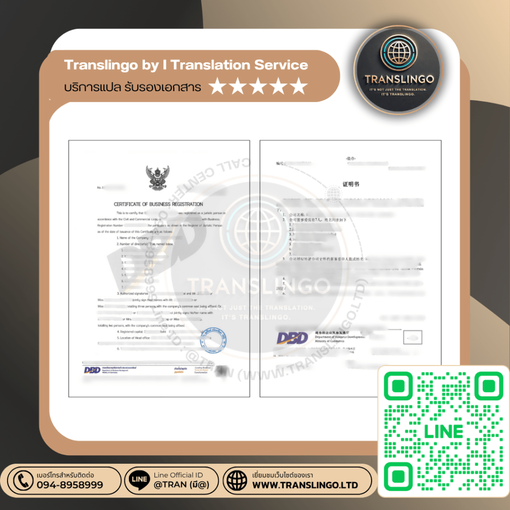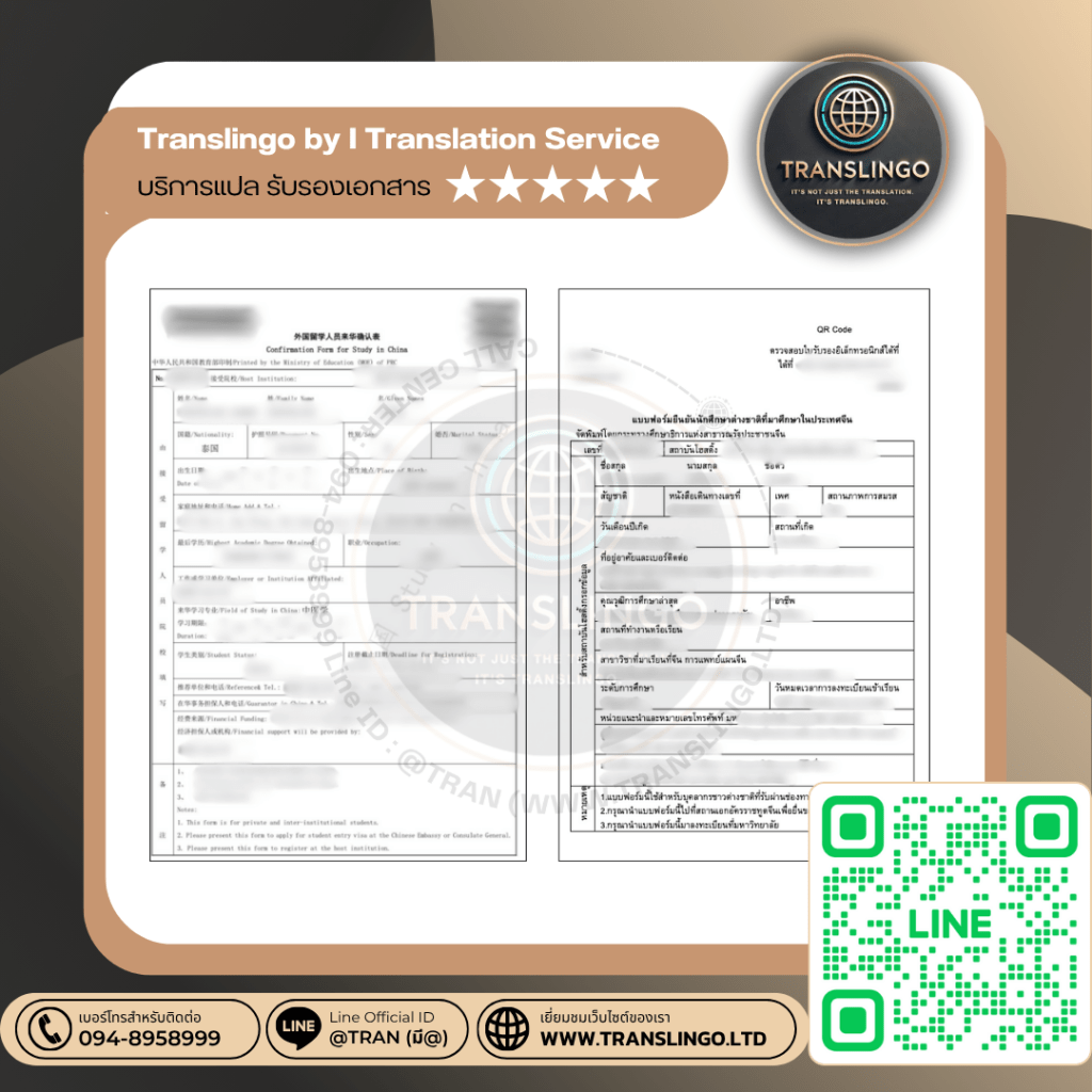 แปลเป็นไทย: เมื่อนำเอกสารที่ผ่านการรับรองครบถ้วนจากจีนเข้ามาในไทยแล้ว ให้นำมาแปลเป็นภาษาไทยโดยนักแปลที่ได้รับการยอมรับ