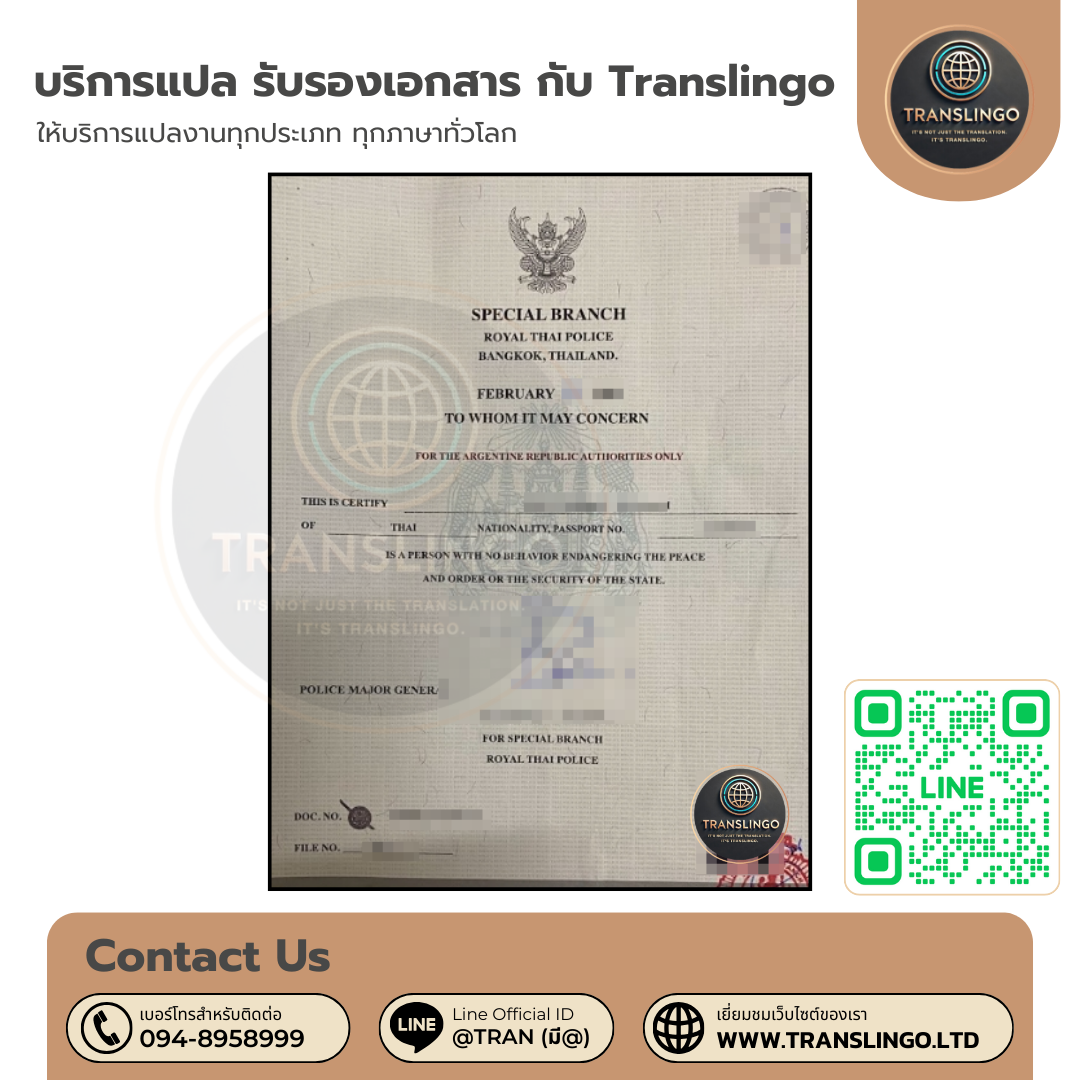 ในหลายกรณี เอกสารตรวจประวัติอาชญากรรม ไม่สามารถใช้ได้ทันทีหากไม่มีการรับรอง Translingo จึงให้บริการในส่วนนี้อย่างครบถ้วน เช่น