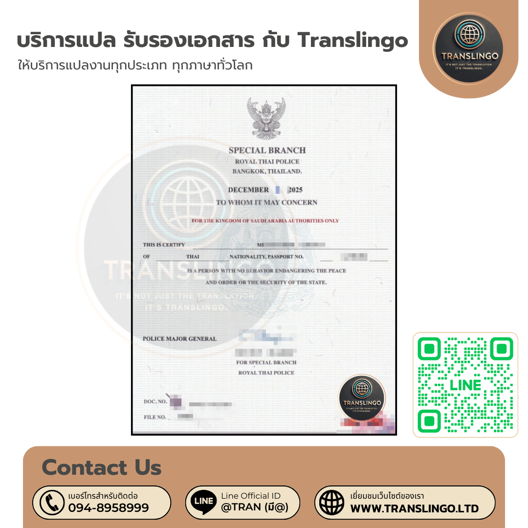 สอบถามเพิ่มเติมเกี่ยวกับบริการแปล รับรองเอกสาร