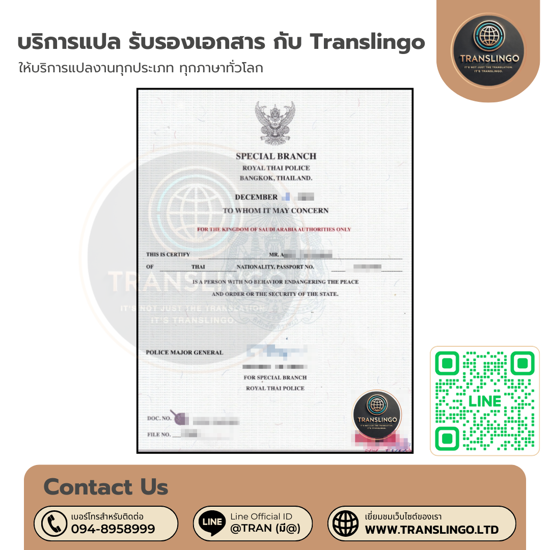 บริการตรวจประวัติอาชญากรรม เพื่อขอวีซ่า / สมัครงาน ทั้งไทยและต่างประเทศ กับ Translingo