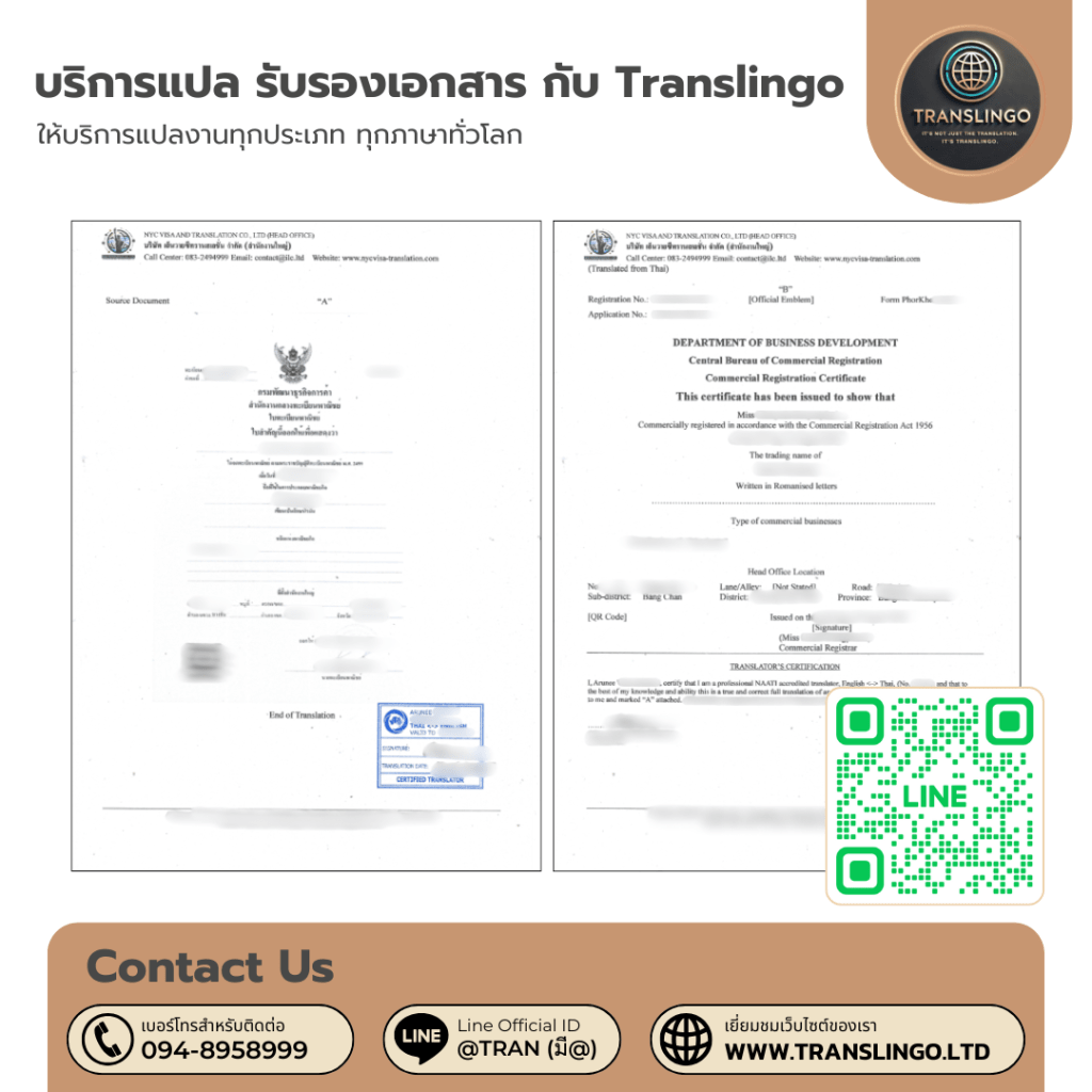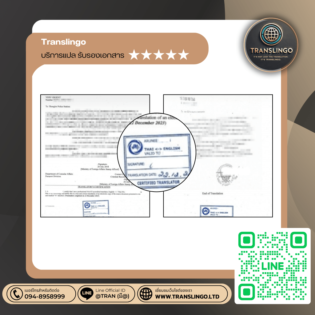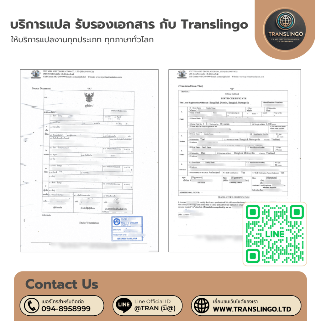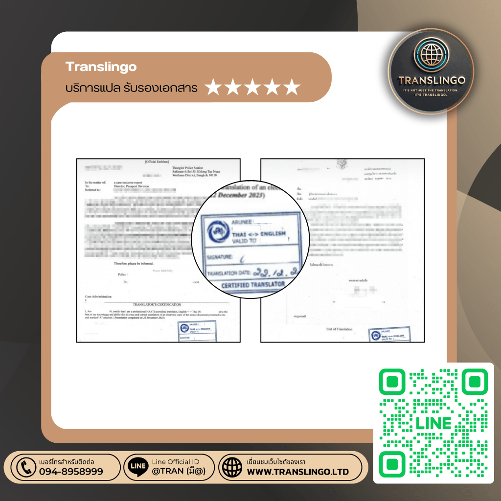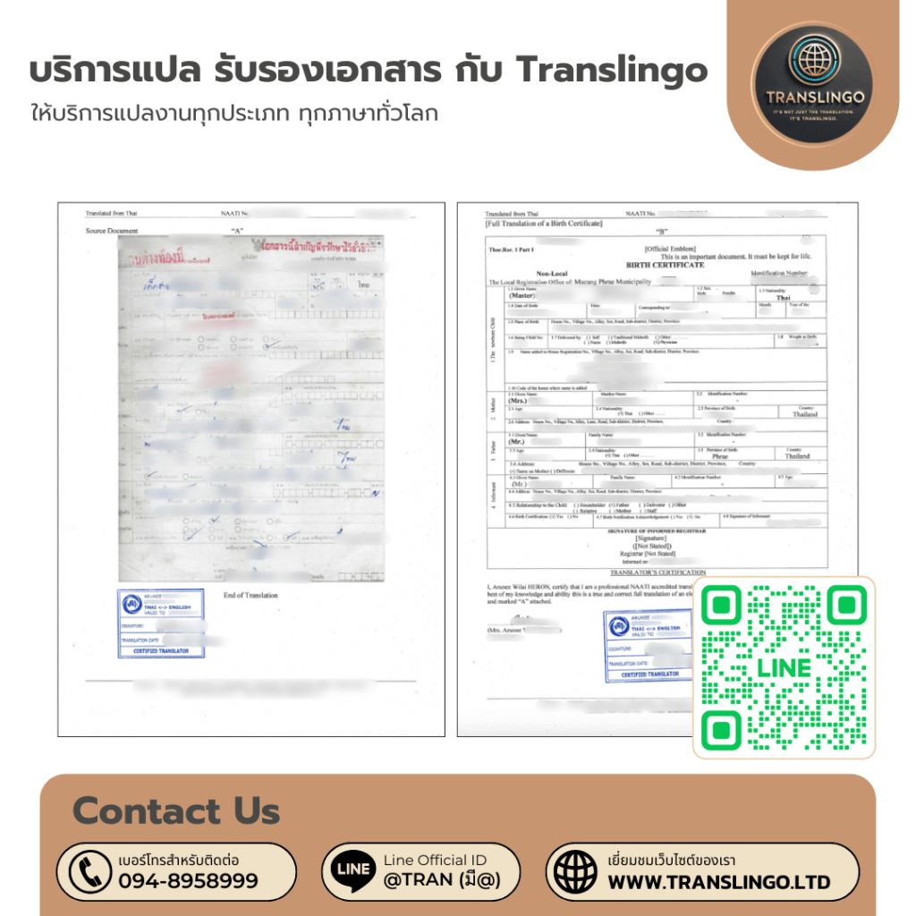 สอบถามเพิ่มเติมเกี่ยวกับบริการแปล รับรองเอกสาร