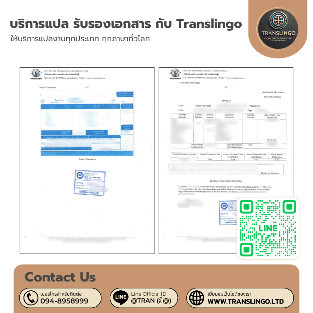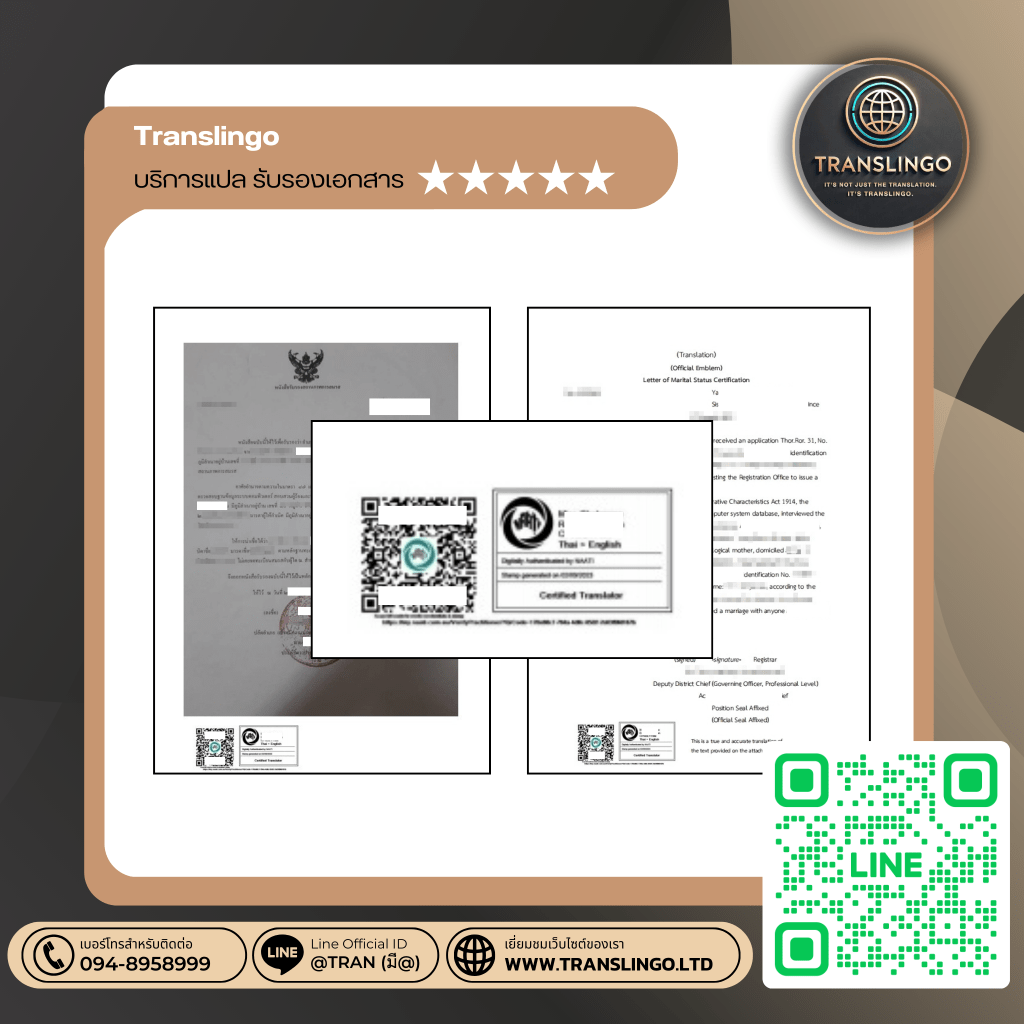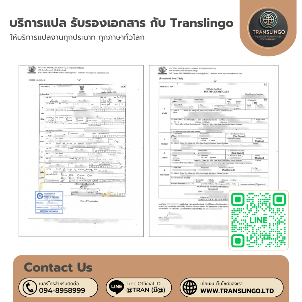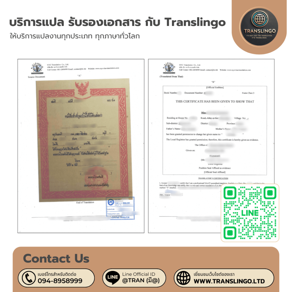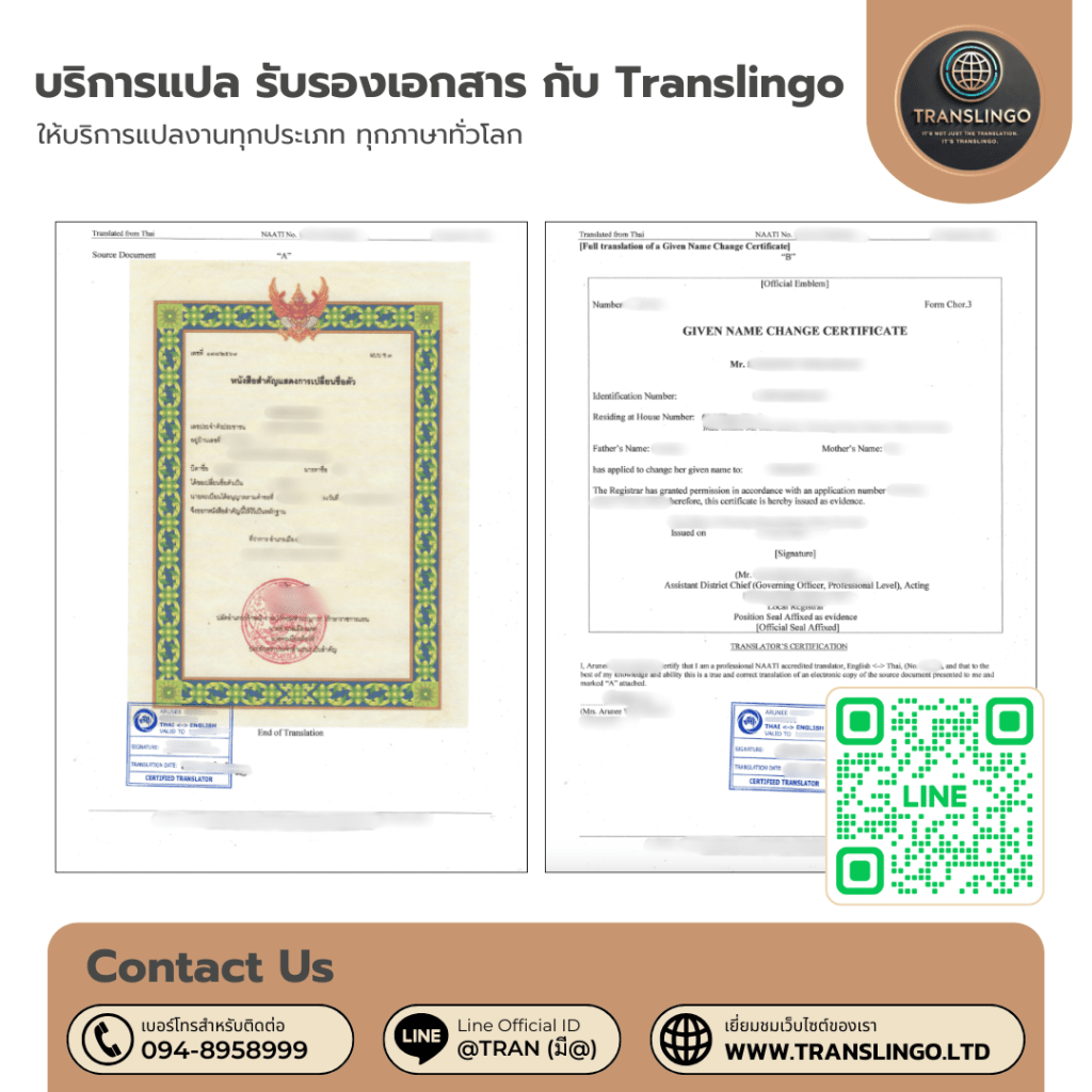 สอบถามเพิ่มเติมเกี่ยวกับบริการแปล รับรองเอกสาร