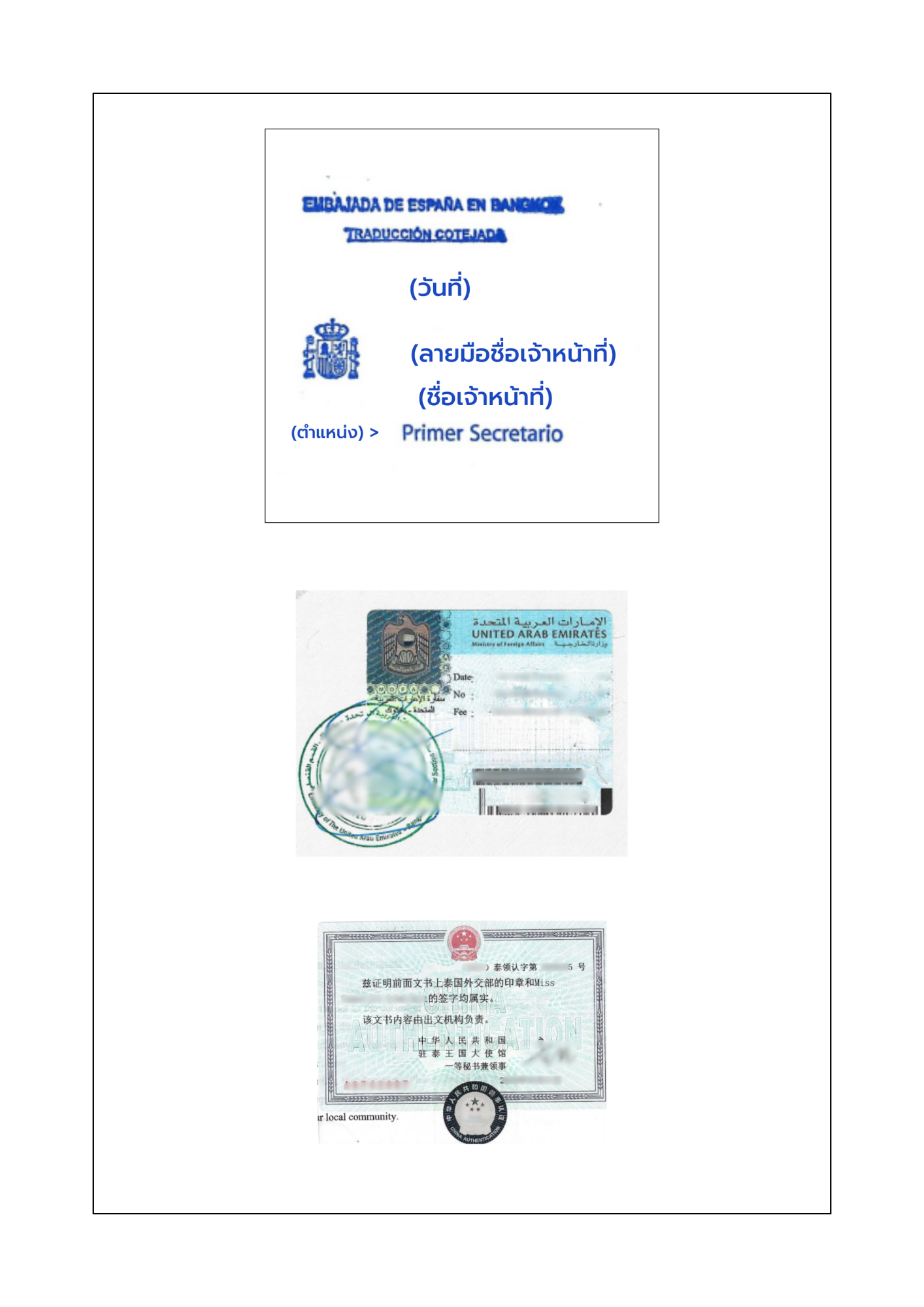 - ตัวอย่างประเทศที่มักต้องการการรับรองจากสถานทูต: จีน, สหรัฐอาหรับเอมิเรตส์, เวียดนาม, คูเวต, กาตาร์ และอีกหลายประเทศ (ข้อมูลอาจเปลี่ยนแปลง ควรตรวจสอบกับสถานทูตโดยตรงเสมอ)
