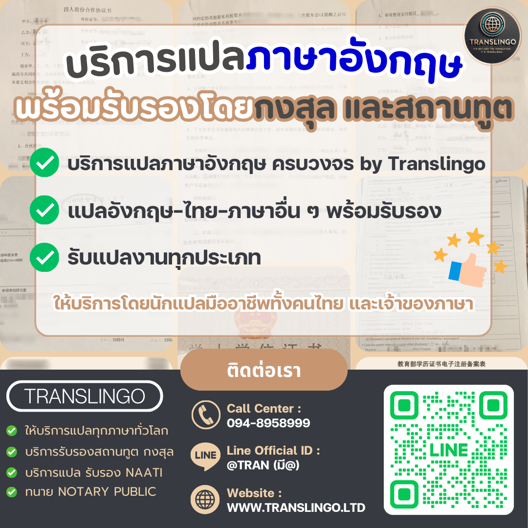 บริการแปลภาษาอังกฤษ พร้อมรับรองเอกสาร